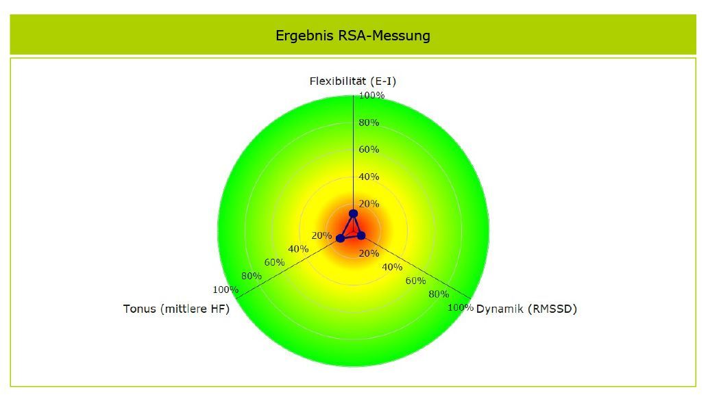 The stronger the oscillation of the deflection – i.e. the increase in the heartbeat when inhaling and the decrease when exhaling – the greater the adaptability of the cardiovascular system and thus of the parasympathetic nervous system.